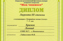 Выпускник нашего сада Храмов Леонид принял участие в открытом региональном фестивале-конкурсе татарского искусства "Моң чишмәсе".