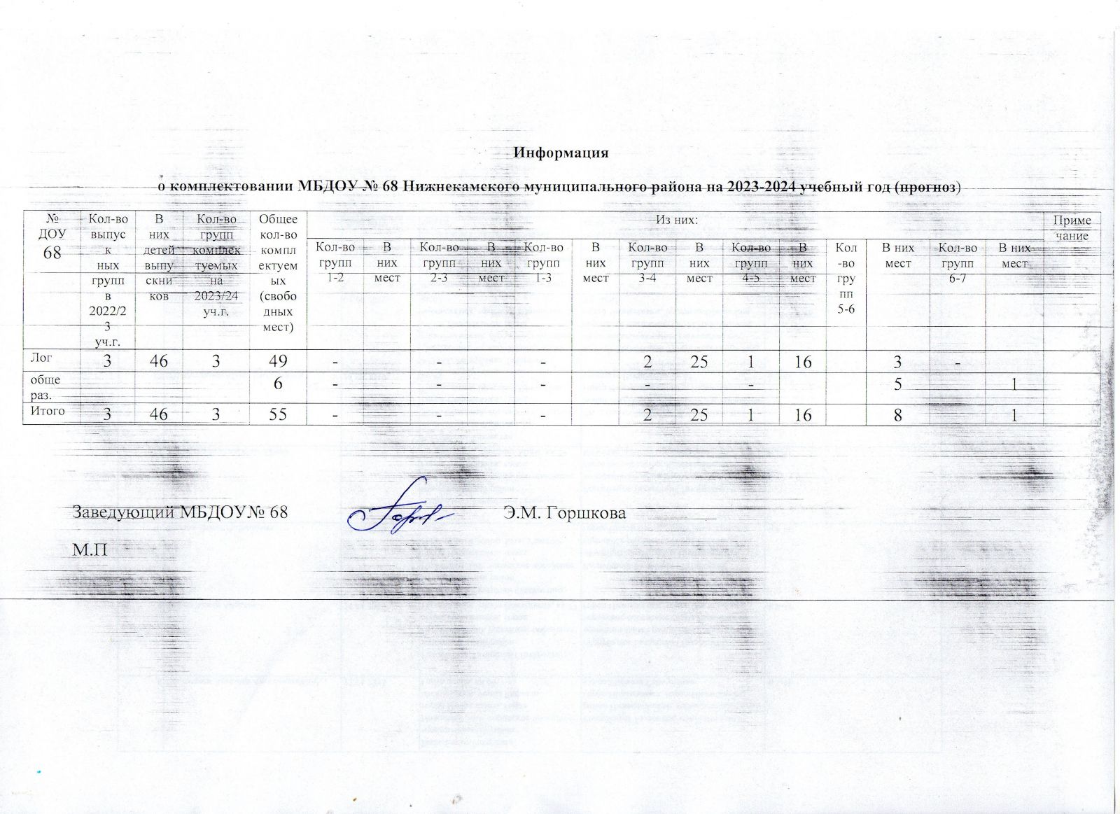 Информация о комплектовании на 2023-2024 учебный год
