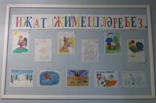Выствка детских рисунков совместно с родителями по мотивам татарских народных сказок и сказок написанных татарскими писателями для детей к декаде татарского языка.