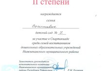 28.02.15г. воспитанница МБДОУ №7 совместно с родителями участвовала в "Спартакиаде среди семей воспитанников дошкольных образовательных учреждений Нижнекамского муниципального района". Мы гордимся, что семья Сагитовых заняла почетное второе место среди участников спартакиады. Выражаем благодарность за участие, подготовку и стремление к победе всем участникам и организаторам!