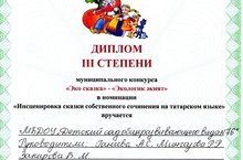 Наши воспитанники и педагоги приняли участие в муниципальном конкурсе "Эко сказка- Экологик әкият" и заняли почетное третье место в номинации "Инсценировка сказки собственного сочинения на татарском языке"