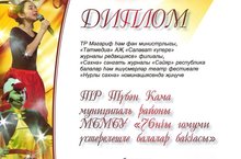 Бүген Яр Чаллы шәһәрендә "СӘЙЯР" дип исемләнгән Балалар һәм яшүсмерләр Республика театр фестиваленең икенче этапы үтте. Безнең балалар "Шәһәребез тарихында халкыбыз бизәкләре "Аулак өй"" күренешен күрсәттеләр һәм Диплом Лауреата яулап алдылар.