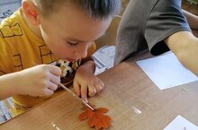 Дети рисовали красками на листочках, а затем делали отпечаток на бумаге.