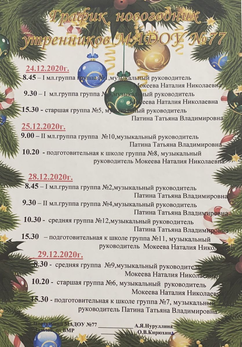 График новогодних утренников 30.11.2020