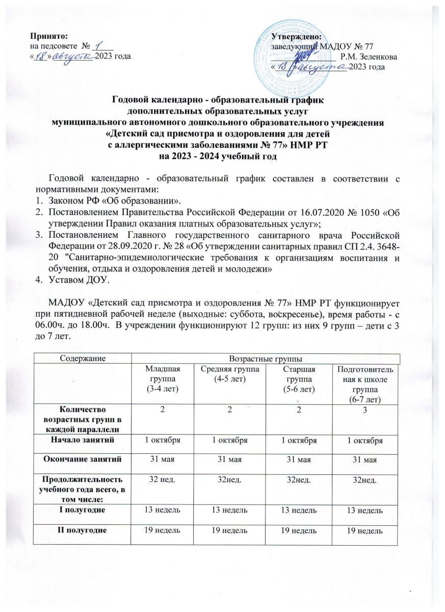- Годовой календарно- образовательный график дополнительных образовательных программ