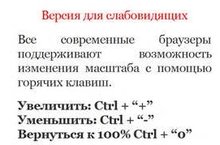 Если Вы испытываете затруднения при восприятии текстовой информации и графических деталей нашего сайта, предлагаем Вам воспользоваться стандартным инструментом, встроенным во все современные интернет-браузеры. Для применения функции масштабирования: перейдите на интересующую Вас страницу, затем, удерживая в нажатом состоянии клавишу "Ctrl", нажмите клавишу "+"необходимое число раз для увеличения масштаба или клавишу "-" - для его уменьшения. Сочетание "Ctrl" + "0" вернет масштаб страницы к исходному значению.