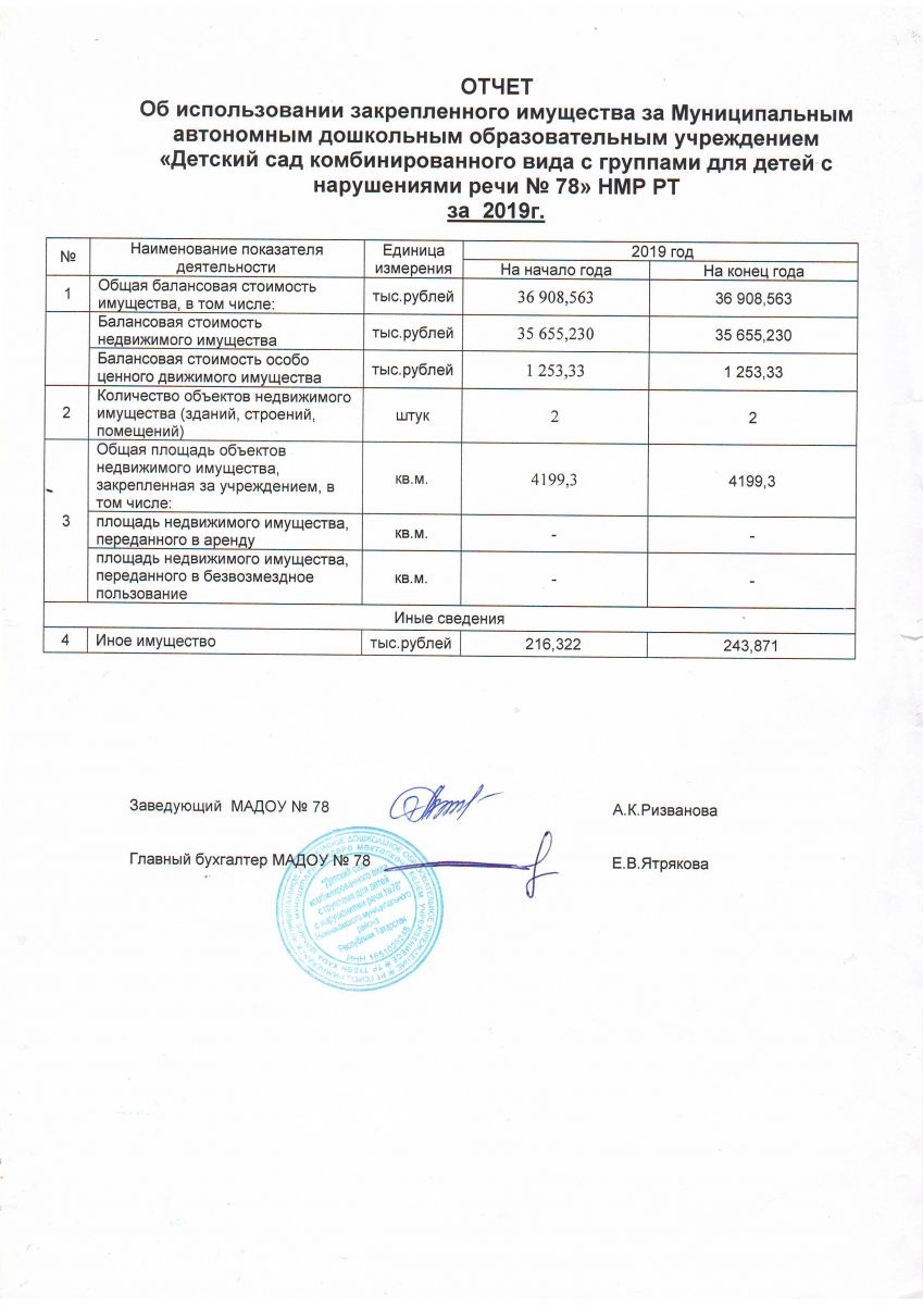 Отчет об использовании закрепленного имущества МАДОУ№78