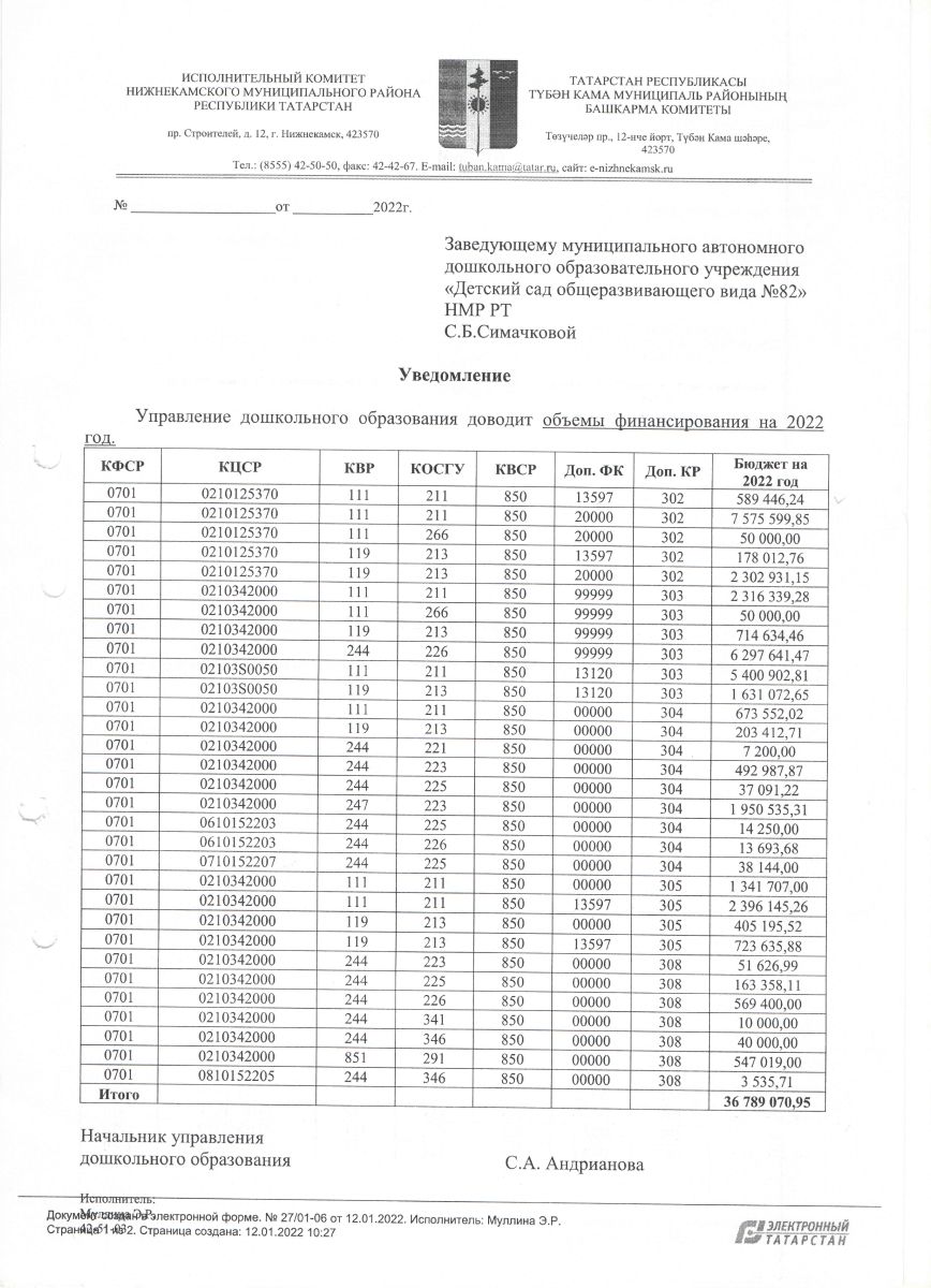 Уведомление об объеме финансирования на 2022г.