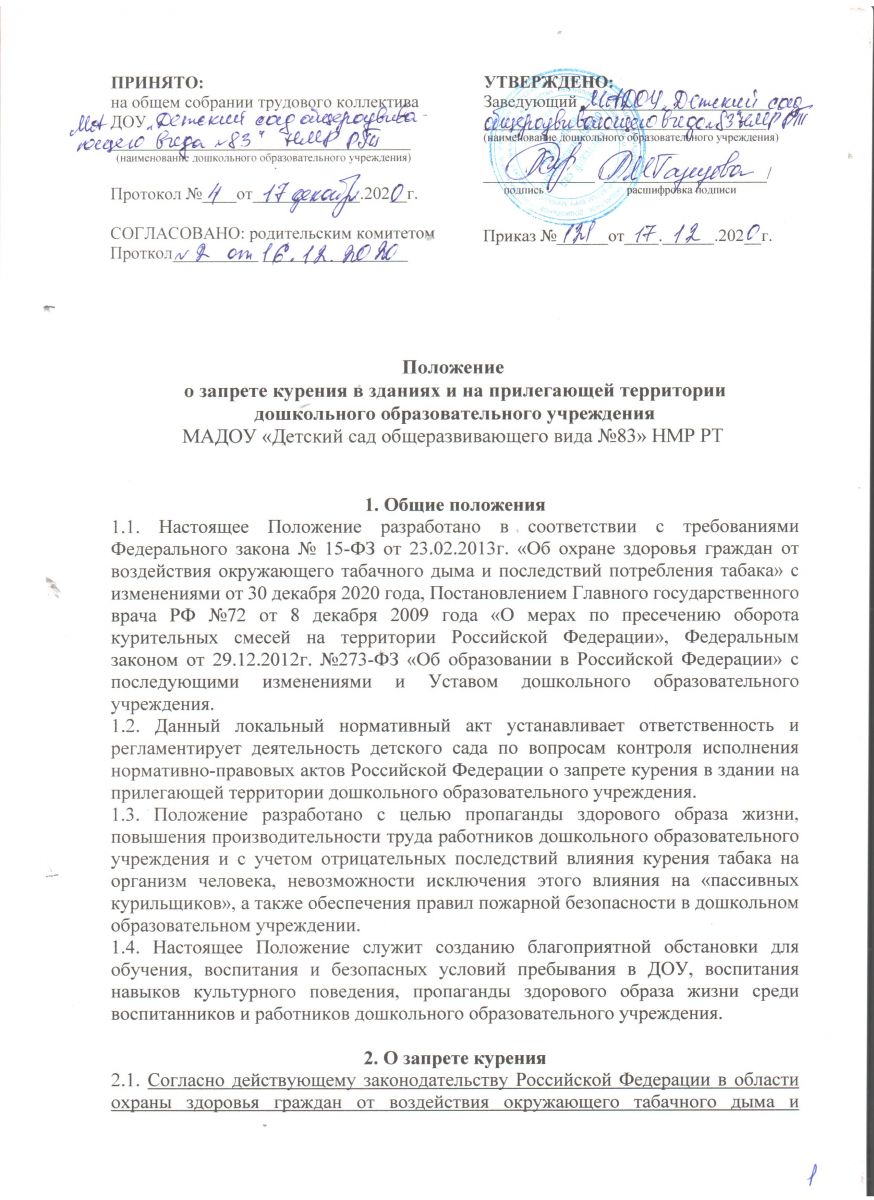 Положение о запрете курения в зданиях и на прилегающих территорий МАДОУ №83