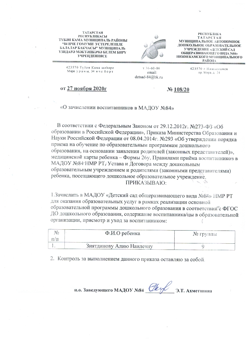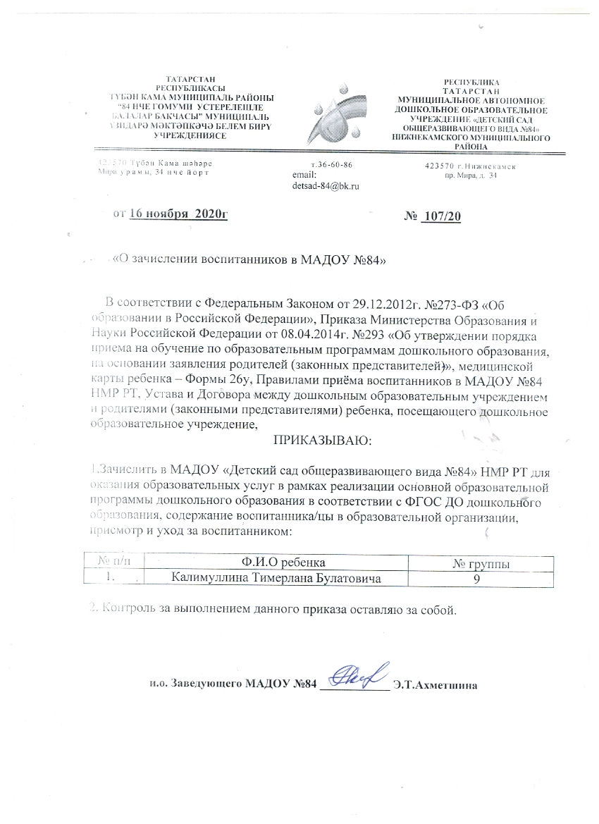 Муниципальное автономное дошкольное образовательное учреждение «Детский сад общеразвивающего вида №84" Нижнекамского муниципального района Республики Татарстан (МАДОУ № 84)