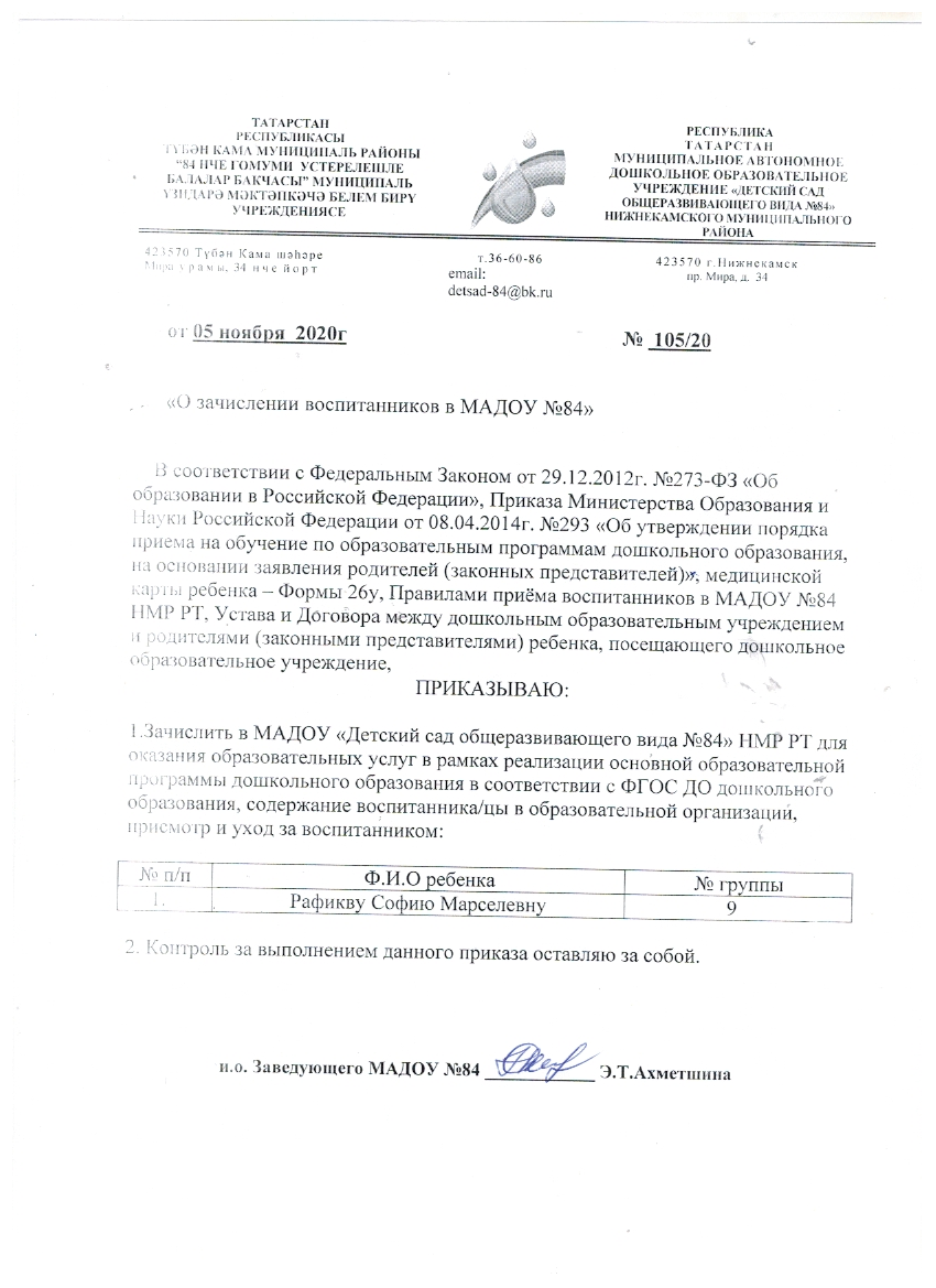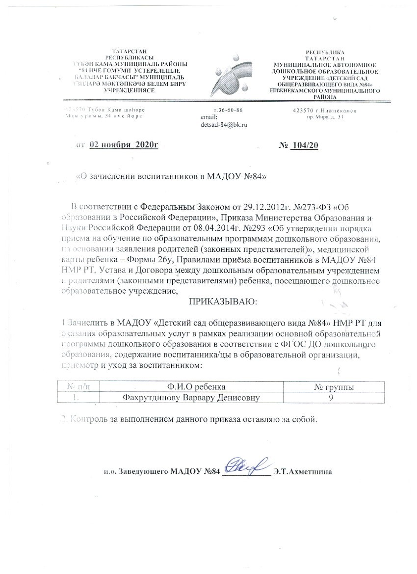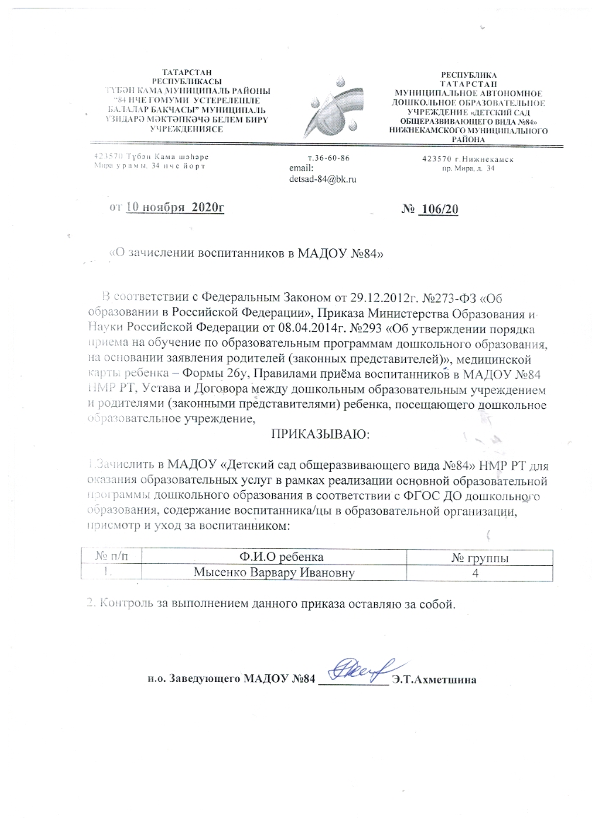Короткое название: МАДОУ "Детский сад общеразвивающего вида №84" НМР РТ