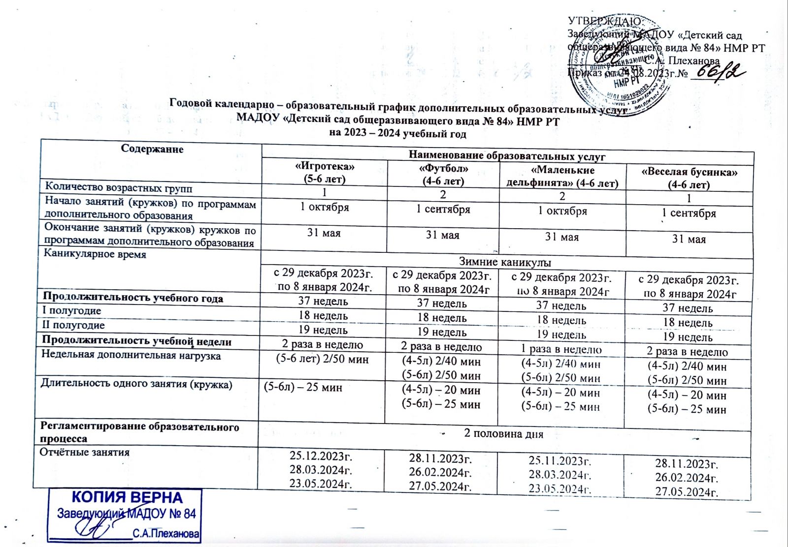 Годовой календарно-образовательный график оказания платных образовательных услуг в 2023-2024 уч.году