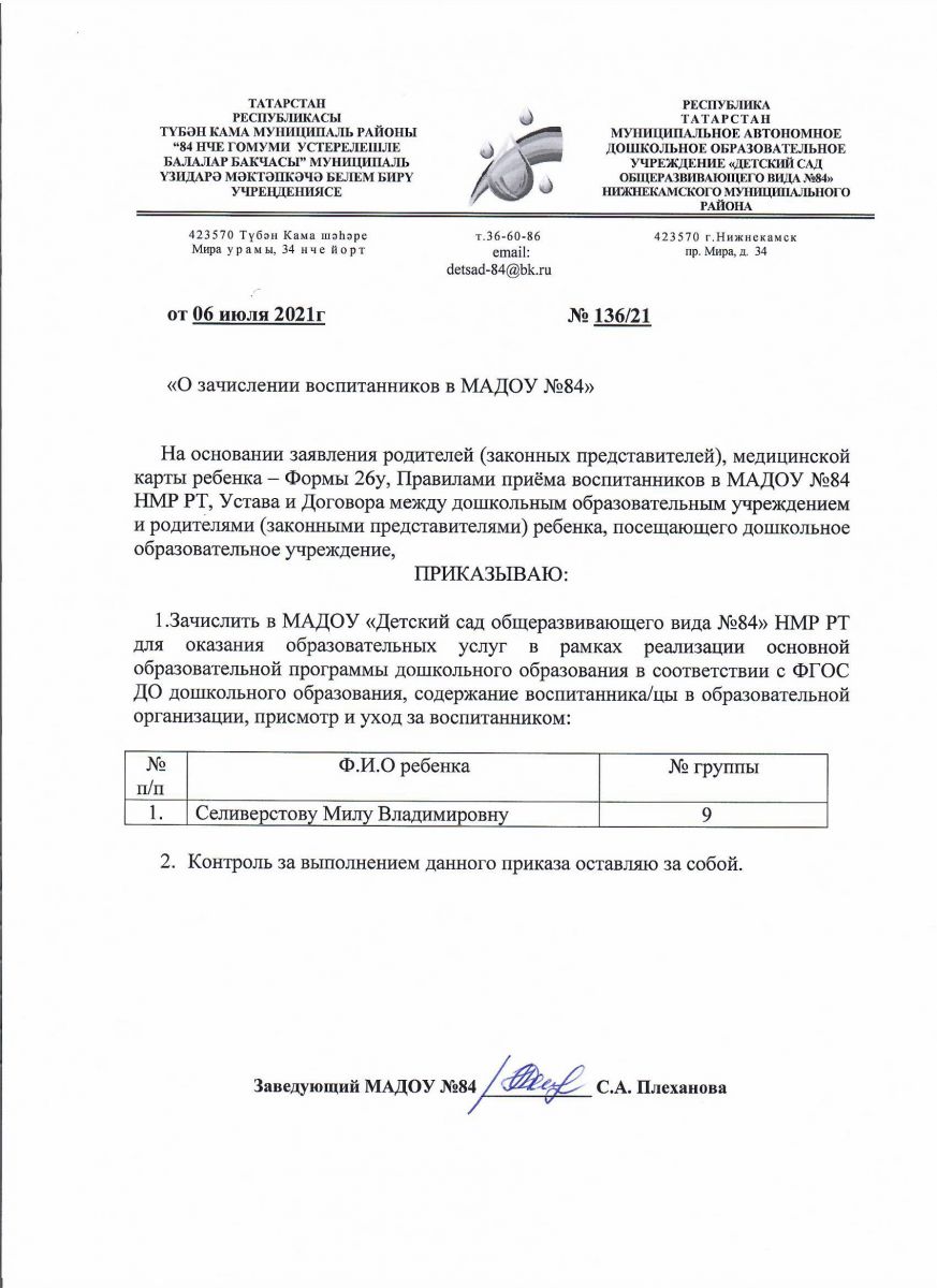 | Короткое название: | МАДОУ "Детский сад общеразвивающего вида №84" НМР РТ |