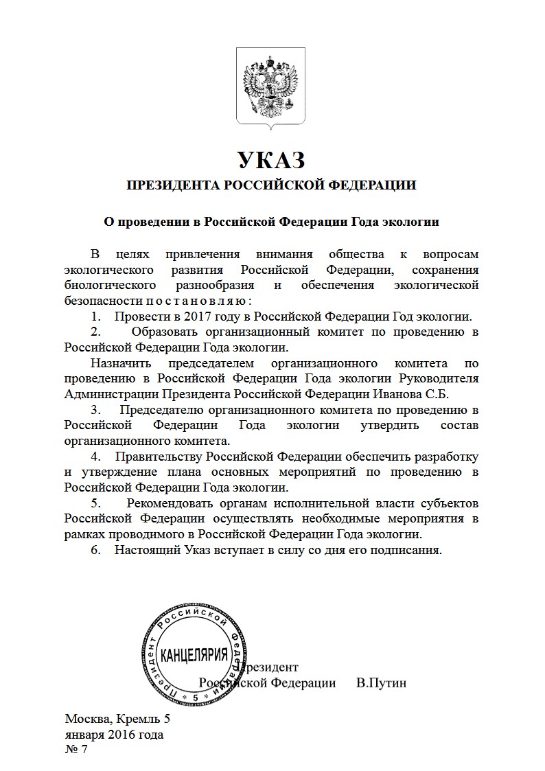 2017 год в России объявлен годом Экологии