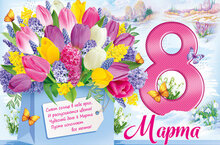 С наступающим первым весенним праздником вас - Днём 8 Марта!