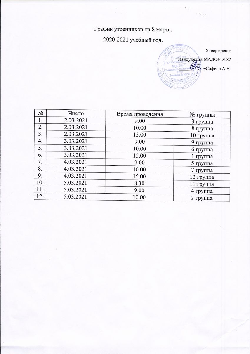 График утренников на 8 марта 25.02.2021