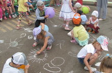 Сегодня в детском саду мы отметили праздник "День защиты детей". Дети веселились, играли, помогали Фунтику, танцевали, пускали мыльные пузыри и рисовали на асфальте.