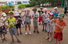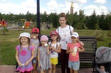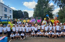 Дети старших групп в рамках акции «Россия рисует» изготовили флажки и поздравили жителей микрорайона в парке «Нефтехимиков»
