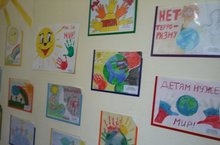 В холле детского сада работает выставкуа детского рисунка на тему "Нет-терроризму"