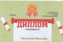 Воспитаннику группы №5, Кривилеву Никите , в библиотеке им. Г.Тукая, был вручен диплом за победу в номинации "Мы вместе с бабушкой и дедушкой".
