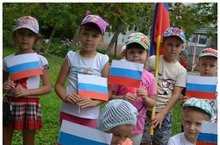 Цикл познавательных бесед «Наш дом - Россия», выставка рисунков «Я люблю тебя Россия», прослушивание Гимна Российской Федерации, воспитанники старшего возраста изготовили флажки с Российской символикой и подарили малышам и родителям.