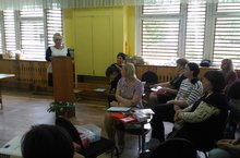 4 сентября на базе ДОУ № 75 состоялась работа секции «Особенности взаимодействия дошкольных образовательных организаций с семьей в условиях ФГОС ДО». Воспитатель, Ястребцева Л.В. выступила на пленарном заседании педагогов с темой «Взаимодествие с родителями через проведение совместных утренников», представила видео, где участниками - героями Новогоднего праздника были сами родители.