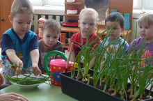 Дети выращивали лук, укроп, цветы. Наблюдали за их ростом. ухаживали. Результат записывали в "Тетрадь открытий"