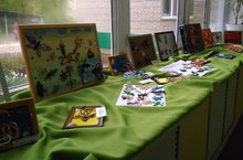 В детском саду организована выставка «Чарующий мир бисера», на которой представлены работы детей, посещающих кружок по бисероплетению «Волшебная бусинка». На выставке можно увидеть цветы, бабочек, рыбок, стрекоз, пчёлок и др. изделия из бисера. Организовала выставку руководитель кружка: воспитатель Хусаенова З.С.