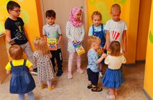 В рамках "Недели доброты" в старших и подготовительных к школе группах детского сада прошёл "День книжки-малышки", дети отремонтировали книжки для самых маленьких ребяток; "День улыбок", дети нарисовали и подарили друг другу смайлики; "День добрых пожеланий", родители и дети "собрали" из цветов вазу добрых пожеланий. Мероприятия были проведены с целью формирования у детей положительных черт характера, мотивирования на совершение добрых дел.