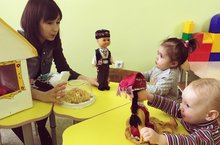 В нашем детском саду с 11 по 21 февраля прошла декада родного языка. Ежедневно с воспитанниками проводились мероприятия, в холле была организованна выставка детских рисунков по мотивам татарских сказок «Әкият иләндә», в группах – выставки «Татарские узоры и орнаменты». А с малышами адаптационной группы были организованы игры с куклами в национальных костюмах, совместно с мамами дети лепили традиционное татарское блюдо «чак-чак».