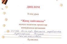 Воспитатель Мустафина Рамзия Сулеймановна представила конкурсный материал «Йөрәкләргә салган тирән эзләр!» в номинации «Лучший сценарий мероприятия с детьми – Иң яхшы чаралар сценариясе» и заняла почетное 2 место.
