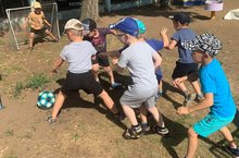 Сегодня на площадке детского сада царила веселая, дружеская атмосфера. Ребята с большим желанием поиграли в любимые игры из детства своих мам и пап, такие как: «Вышибалы», «Ручеёк», «Стоп!», «Футбол», «Цепи кованые», «Передай мяч». Не остались в стороне и мамы ребят, они с удовольствием «окунулись в детство» и приняли самое активное участие в играх.