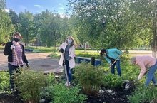 Сегодня учителя гимназии приняли участие в благоустройстве школьной территории.