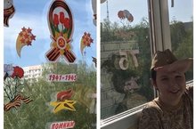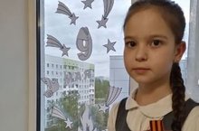 Четыркина София, ученица 5а класса (кл.рук. Андреева А. А.), принимает участие в акции #окна_победы