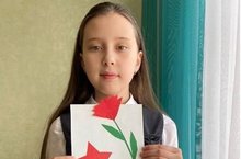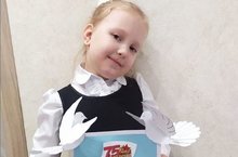 Никонорова Элина, ученица 2б класса (кл.рук. Вагизова Р.Ф.), со своей поделкой для ветеранов.