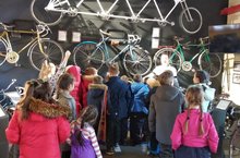 Ребятам показали и рассказали об экспонатах музея: швейцарском военном велосипеде середины XX века, новеньком американском тандеме, двухколёсных экземплярах из Риги, легендарных «Салютах», цирковом транспорте с огромным передним колесом Пенни-Фартинг и многих других необычных велосипедах