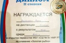 Поздравляем ученицу 3В класса Ахмерову Дану со 2 местом в открытом первенстве МБУ "СШ №8" по плаванию "Золотая рыбка". Молодец! Так держать!