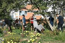 Сегодня 11 Б класс (кл.рук. Сергеева И.В.) приводил в порядок клумбу. Ученики вскопали землю и посадили многолетние растения.