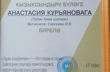 В Казани прошел X Республиканский конкурс проектов учащихся и педагогов "Служу Отечеству", на котором ученица 7б класса гимназии Хадиева Камилла представила свой культурно-исторический проект и стала лауреатом (рук. Сайфуллина Н.И. и Волкова Е.Г.).