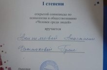 Поздравляем победителей открытой олимпиады по психологии обществознанию "Человек среди людей" 23.03.2019