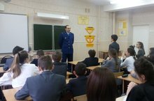 2 декабря в 7а классе прошёл классный час, который провёл Каримов Ринат Раисович, городской прокурор г. Заинск. Он рассказал ребятам о профессии прокурора, а затем разьяснил школьникам, что такое административная и уголовная ответственность, привёл случаи из практики (ложные звонки, драка в школе, вымогательство, непосещения уроков и ответственность за это). Ребятам беседа очень понравилась, они поблагодарили гостя за интересный и содержательный разговор.