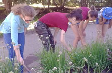 Ребята трудового лагеря продолжают трудиться во благо родной гимназии. Убирают двор, рыхлят цветочные клумбы, готовят кабинеты к новому учебному году.