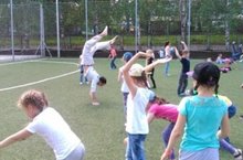 В пришкольном лагере «Солнечный остров» сегодня гости. Тренер спортивной секции Абада-Капоэйро Винер Васильевич Мухаматдинов провёл мастер-класс и тренировку для ребят по основам капоэйро. Было здорово!