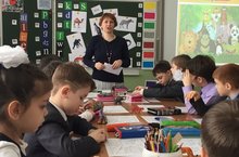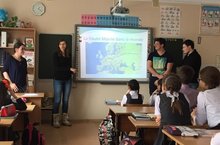 Урок французского языка в 4-х классах Забирова Розалия Рафкатовна провела вместе с французскими студентами. Они рассказали о Франции, своих семьях и учебе в университете. Дети в свою очередь поразили гостей своими знаниями и умениями исполнять огромное колическо песенок на французском языке.