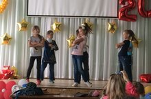 В лагере прошла беседа и викторина, которую провели учащиеся 9 класса с ребятами помладше, рассказав о пионерах-героях и подпольщиках. День завершился большим праздничным концертом «Алло, мы ищем таланты!». Концерт, участниками которого были дети и родители подарил только положительные эмоции, ведь каждый творческий номер был сделан с любовью.