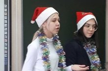 Сегодня новогодняя команда поздравляла с Новым годом 8, 9, 10, 11 классы. НОВОГОДНЕЕ настроение царит в гимназии.