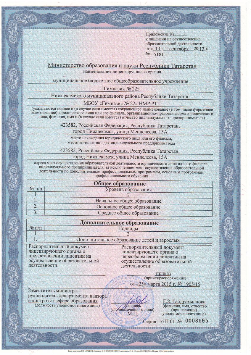 | Короткое название: | МБОУ "Гимназия №22" НМР РТ |