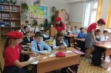 Юнармейцы 8 класса провели в 3 классе мастер-класс по изготовлению бумажного журавлика.