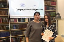 Учитель географии Малова О.Н. и ученица 11 класса Зимина Диана приняли участие во Всероссийской акции "Географический диктант-2018" на базе городской библиотеки имени Г.Тукая.