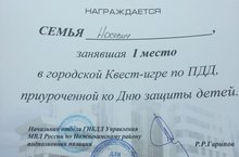 ОГИБДД совместно с автогородком провел городскую Квест-игру по ПДД, приуроченную ко Дню Защиты детей. В данной игре приняли участие две семьи гимназии. Семья Носевич заняла почетное 1 место, семья Маловых - второе. Поздравляем!!! Молодцы!!!
